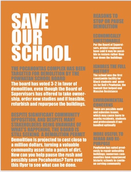 There is an open invitation for those who care about the fate of Pocahontas to speak up. With a petition that has more than 1000 signatures from residents, alumni and other stakeholders, there is clearly disagreement with demolition plans. Yet, the school board members intent on tearing down these properties have not heard the opposition loudly enough or clearly enough to be dissuaded.